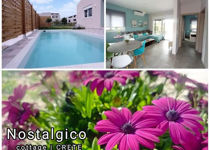 Nostalgico Cottage配有阳光露台,天井 和游泳池等便利设施,设有1间卧室. 这家住宿场所距离Apostolakis Handmade Ceramics有6公里,距离克里特东正教学院大约1.1公里.